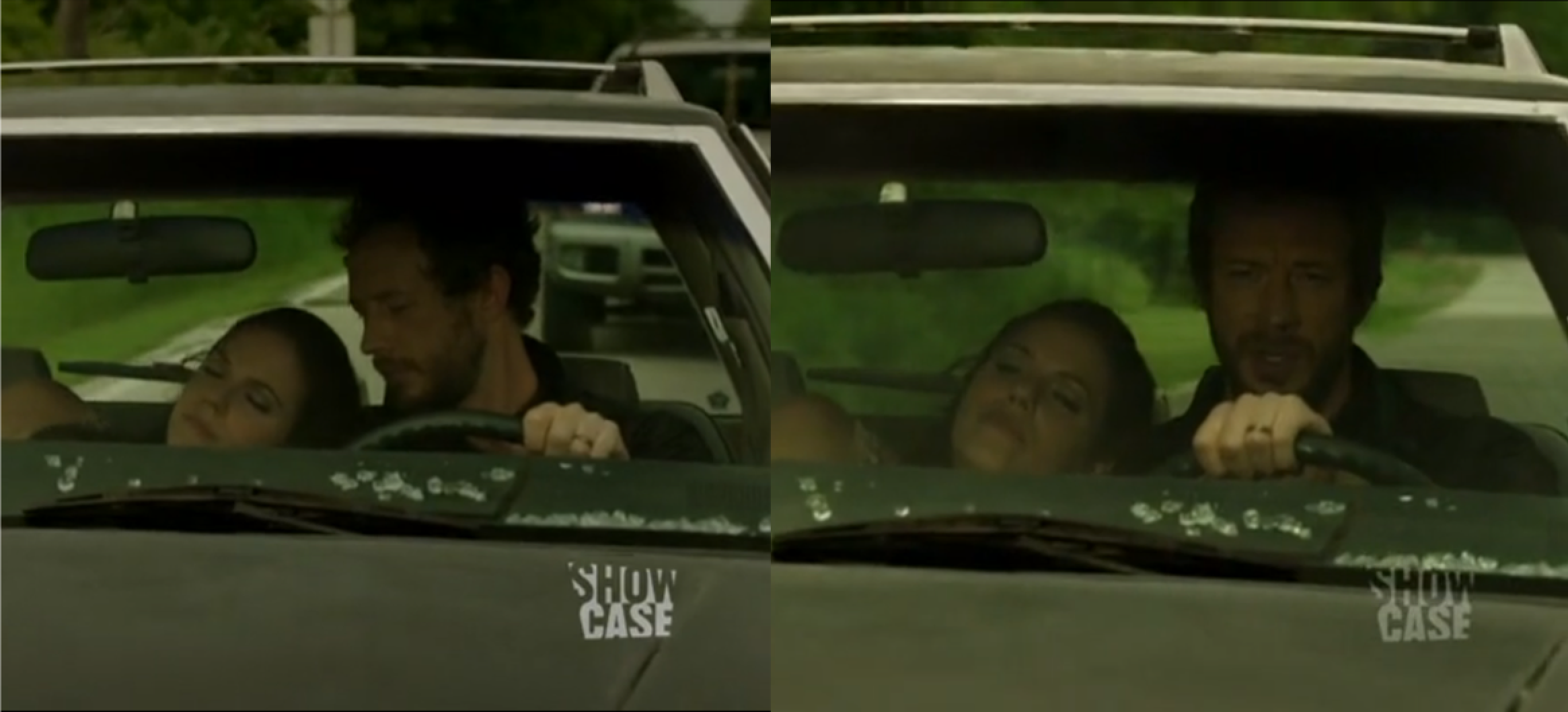 Upon closer inspection, one sees a truck pull up very closely behind Dyson and Bo’s car. When it is revealed that Bo and Dyson forgot what they were talking about, the car has disappeared.