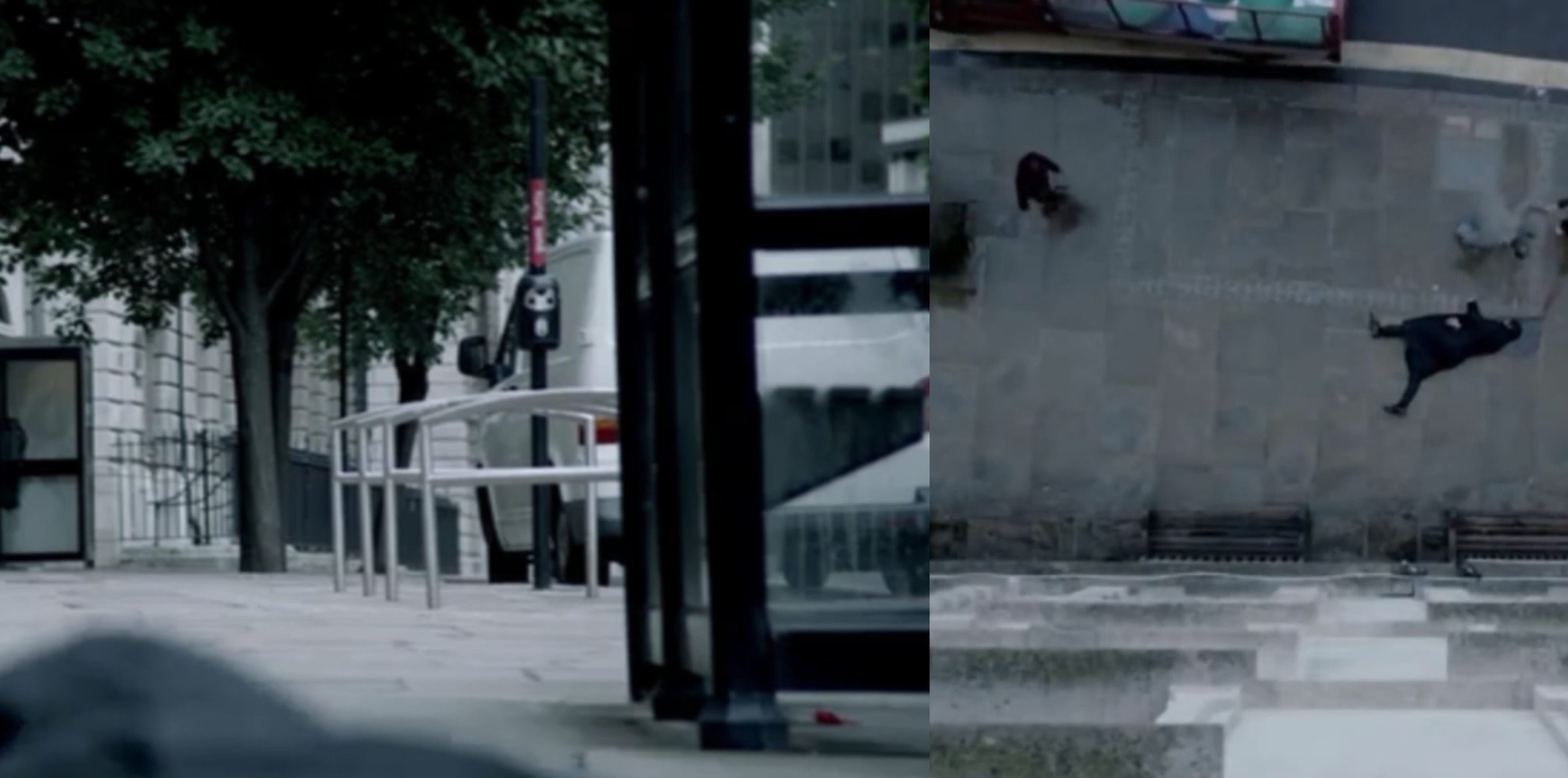 With Moriarty dead and Mary seemingly in position, there’s nothing else left to do but talk to John. When John first gets to the scene, Sherlock tells him to walk back to where the cab let him off and stay there. Once the camera pans back we find that there is actually a divider of some sorts – like a small building – in-between the road where the cab left John off and the hospital. This will obscure John’s sight for the final split seconds of the fall.