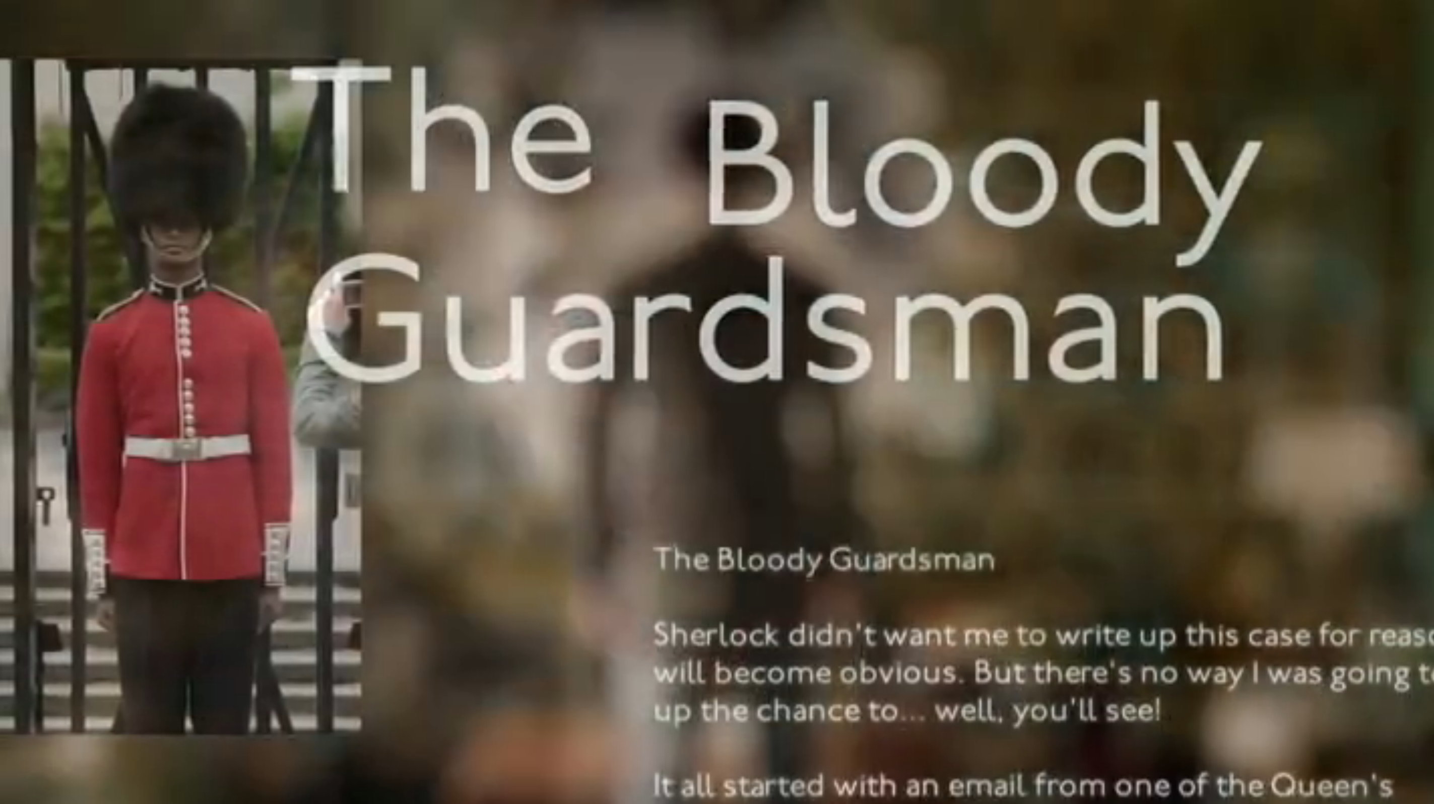 The first case Sherlock and John went to solve during wedding details was referred to as “The Bloody Guardsman” in which one of the Queens guardsman feared for his life. Private Bainbridge had caught Sherlock and John’s help after he noticed he was being stalked by someone both on and off duty. After sneaking in – and getting caught – Sherlock and John learned that Bainbridge had just been found dead after coming back in from guard duty.
