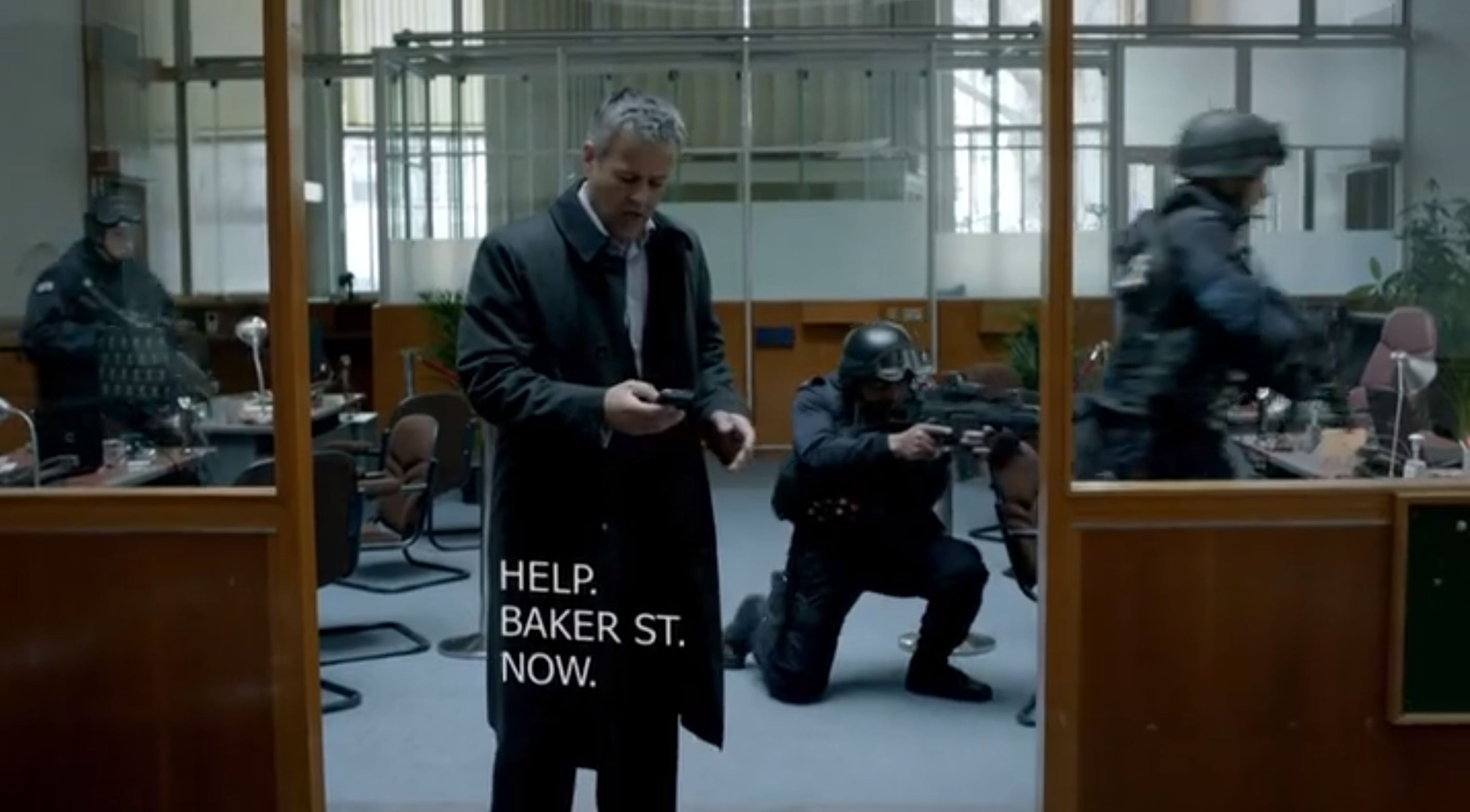 Sherlock manages to covertly text Lestrade to lock the place down while also warning John that something is going to happen by saying “Vatican Cameos”. ‘Vatican Cameos’ is a WW2 term used to alert soldiers than a non military figured entered a base armed, and everyone knew to duck. We originally saw this back in the Season 2 episode “A Scandal in Belgravia” when Sherlock opened Irene Addler’s safe that was rigged with a hidden gun.
