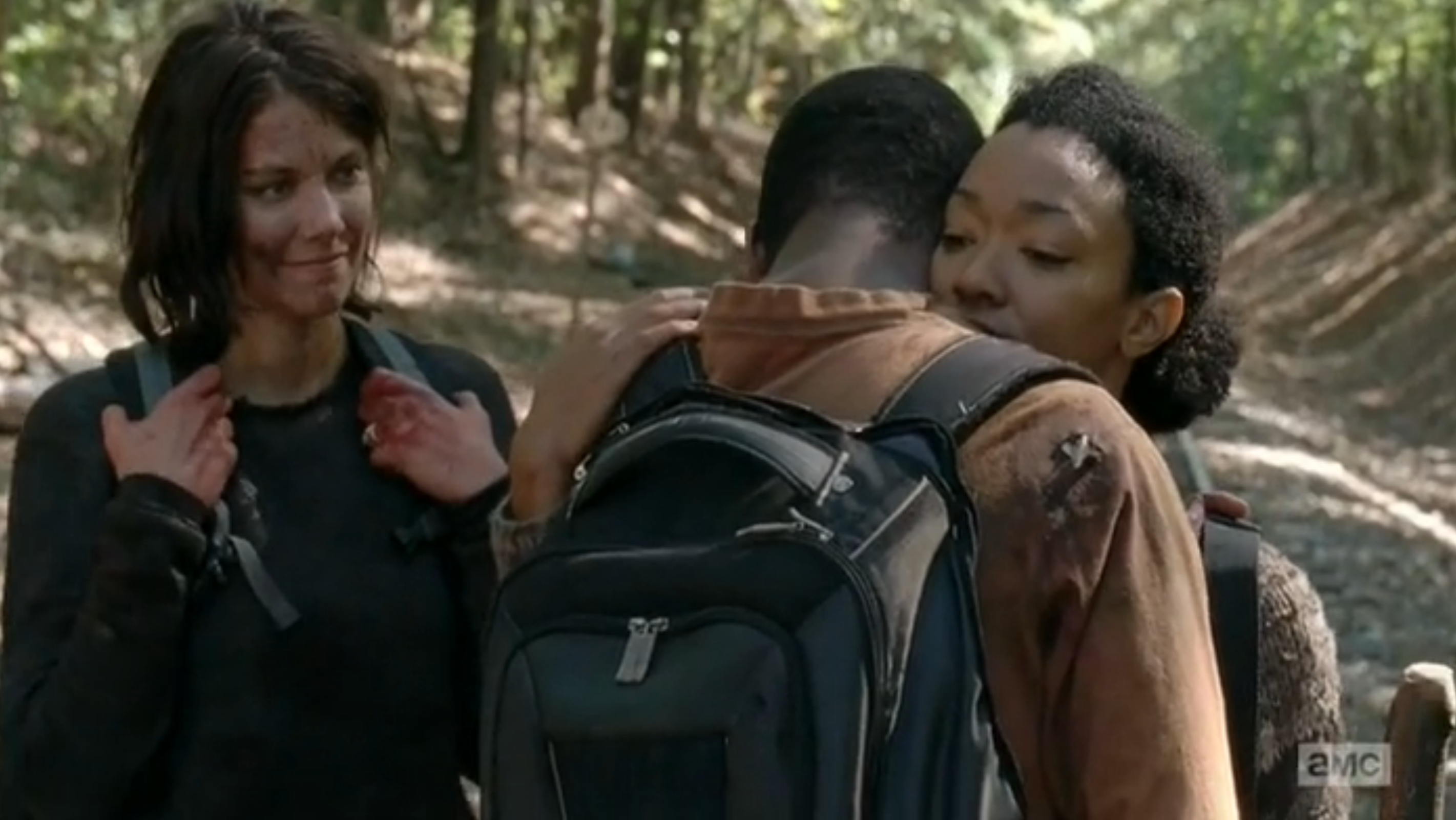 When Maggie, Bob and Sasha find the sign about the sanctuary at Terminus, Bob recalls the radio broadcast he heard in the car a few episodes back – thus confirming this is a real thing. Maggie immediately realizes this is the best place to find Glen, since he would go there in hopes of finding Maggie there. Bob agrees with this idea at the very least because this place is offering sanctuary. Sasha on the other hand seems very opposed to this idea.
