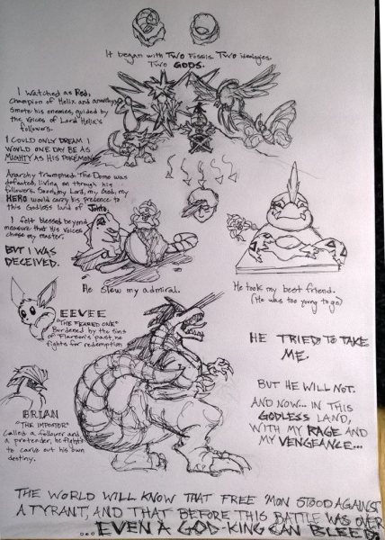 - Though not as detailed as the others, this notebook style sketch traces our tale back to the beginning. When the stories of the Legendary Helix God coming to Jhoto seemed at first a blessing, but in fact were a cruel curse.