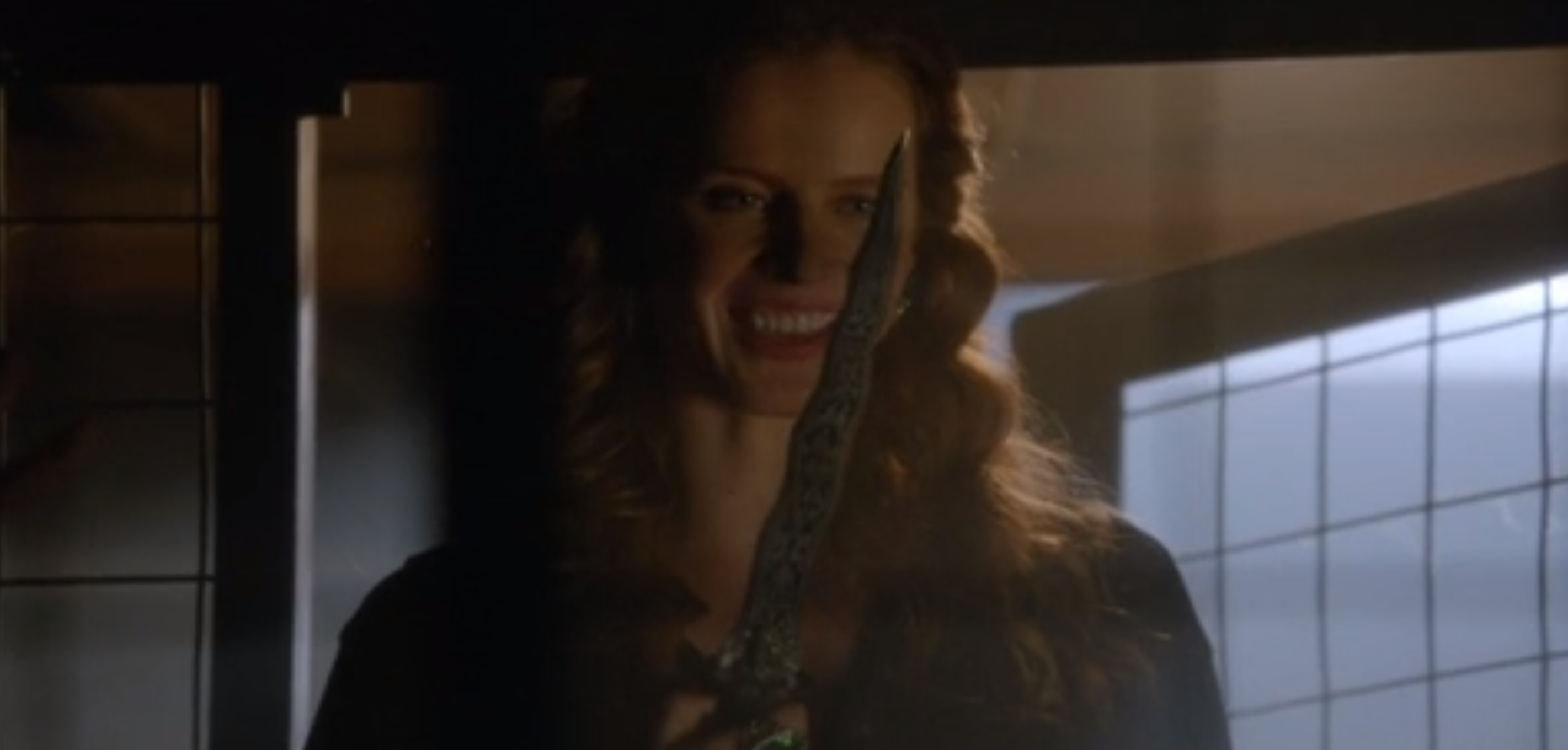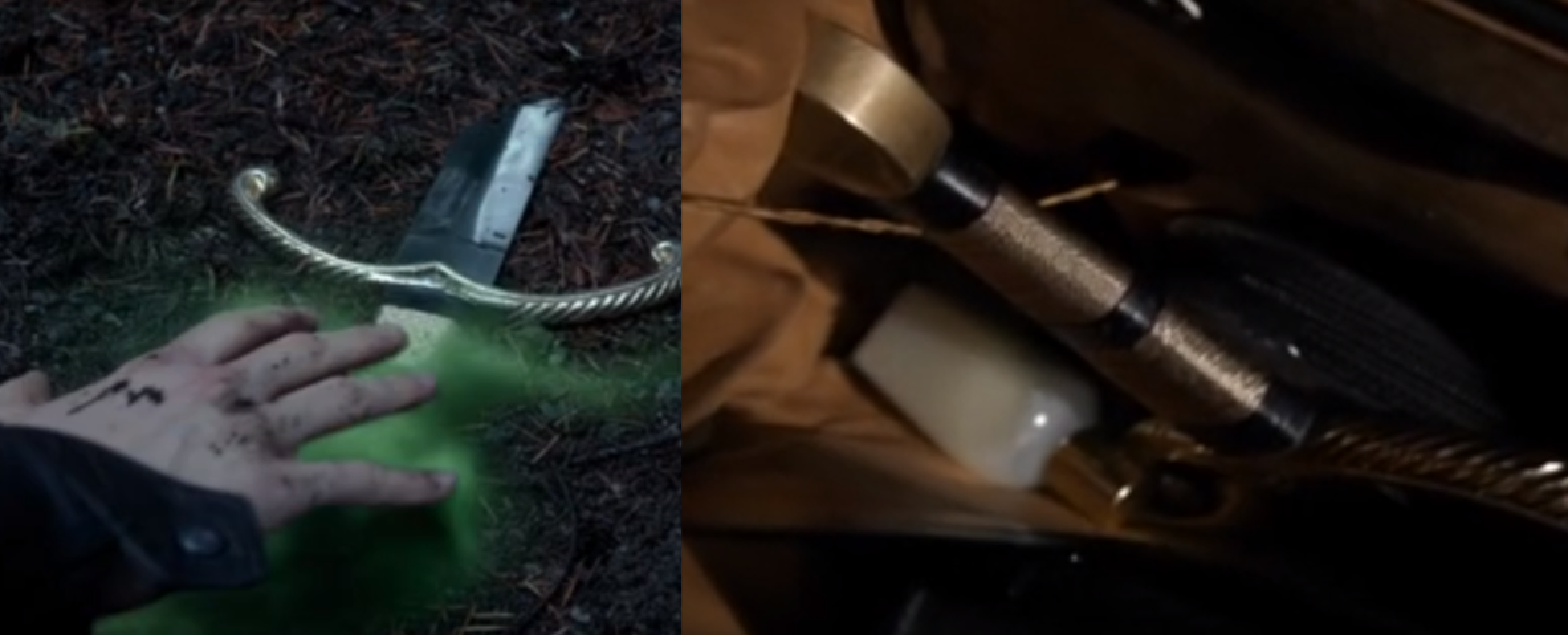 Earlier in the episode, Zelena told Rumplestilskin that she had been after something that Rumple has searched his whole life for and goes against his very nature – something that she wasn’t intending to wait for. It’s entirely possible that the thing she meant here was “courage”; and who is more courageous than Prince Charming. By taking Charming’s hilt – the item he used to conquer his fear – she now has a very powerful totem that represents his courage.