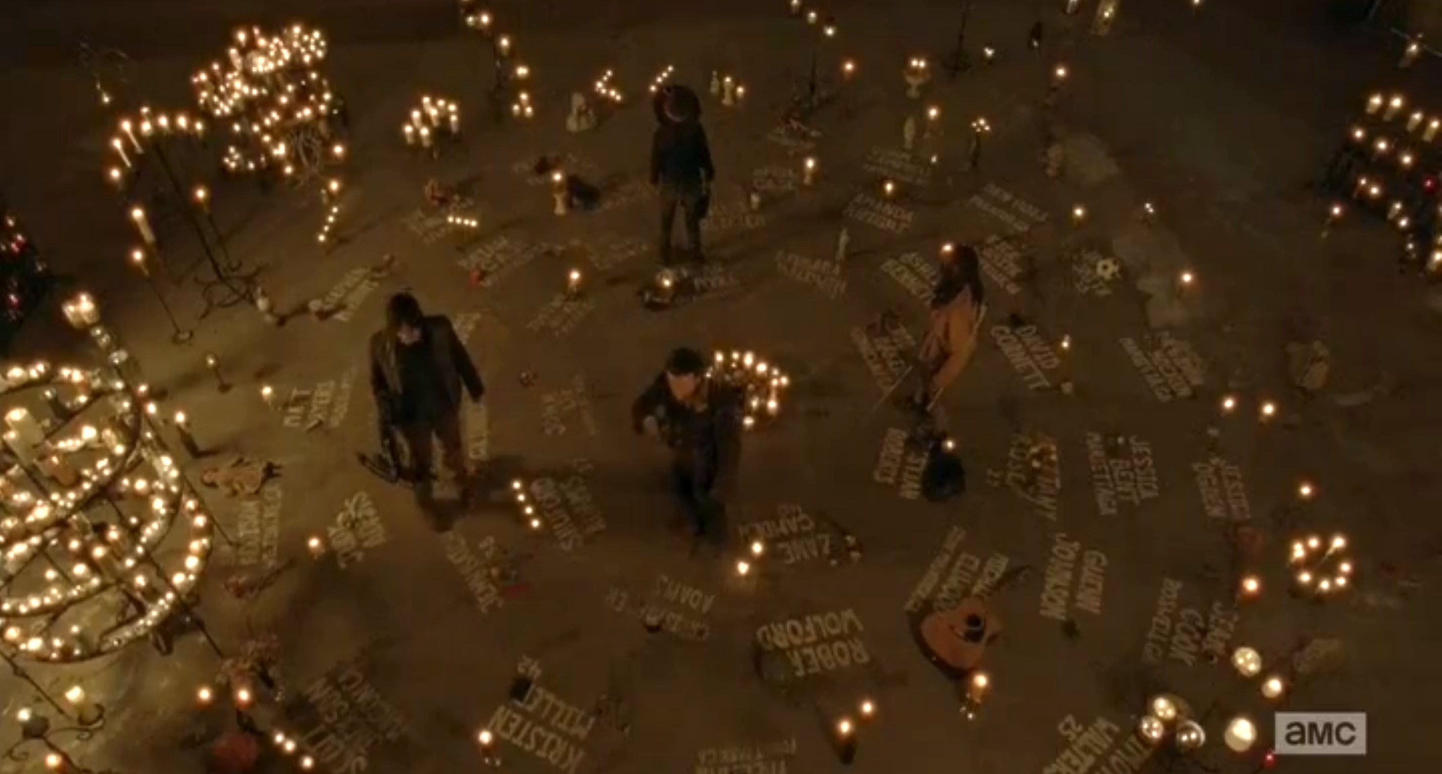 There’s always that underlying level that there’s something more sinister under these brutal moments. We first saw it in the way that girl was looking at Carl that you knew he didn’t just want to kill him, but worse. This idea continued in Terminus when the group spied that strange room with candles strewn all around peoples names and items of remembrance.