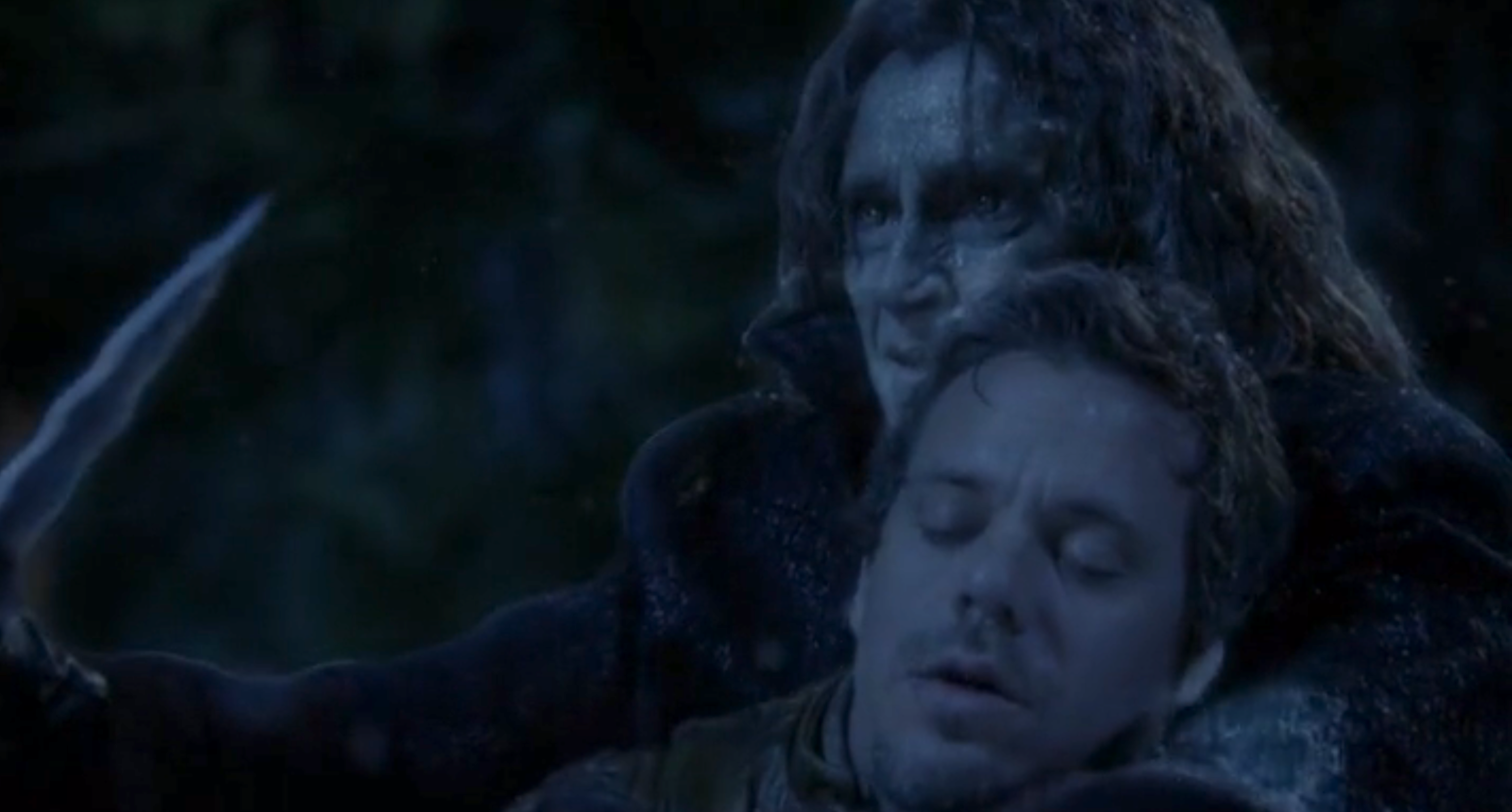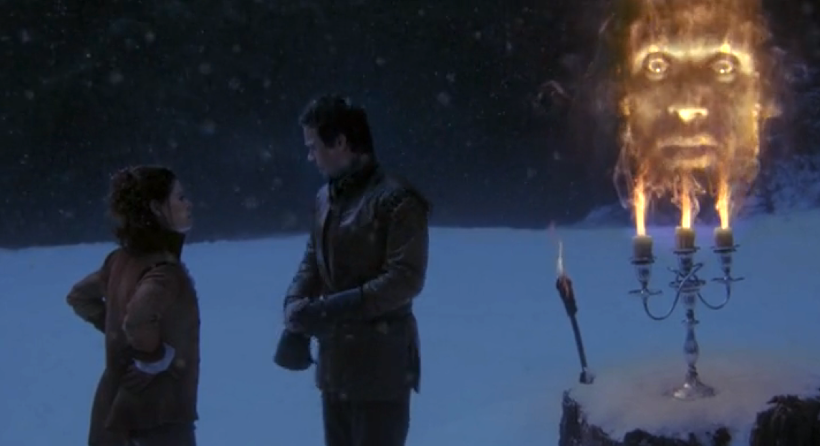 There is almost another casualty of Neal’s selfishness, but luckily Lumière saves Belle from Zelena’s kill order by trapping her in some sort of fire-spin. Belle then grabs Lumière and runs off crying as Rumple uses every fiber of his being to control the voices in his head and keep himself from killing the woman he loves.