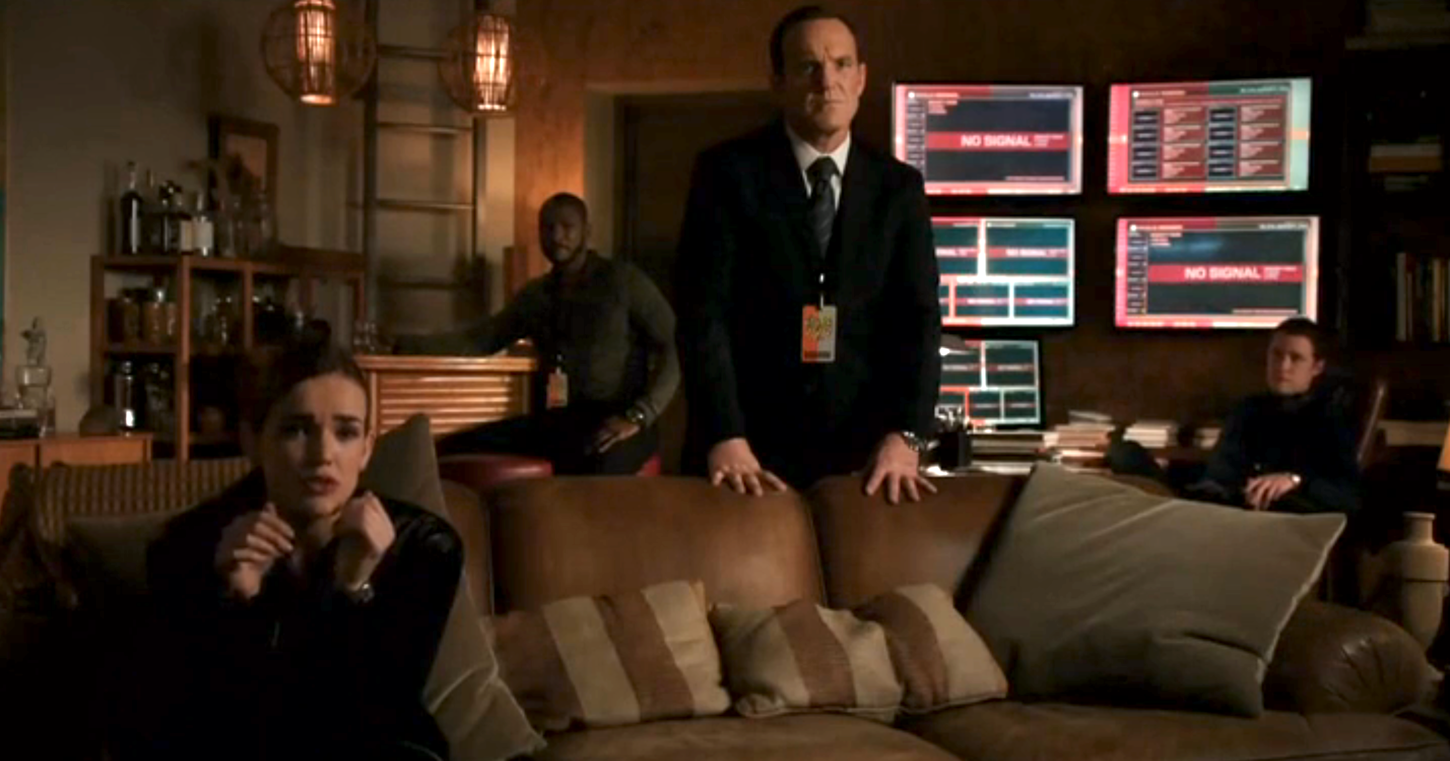 With Providence Base deserted and their plane – known as The Bus – stolen, Coulson and the crew try to piece together what happened in their absence. With all the security cameras and outgoing/incoming video feeds cut, the team has no way of seeing Koenig’s murder or the damning satellite evidence that Skye uncovered from The Fridge Breakout. All that remains is the motion sensor of the Bus cargo hold, which shows May packing up and leaving as well as Skye and Ward getting on the plane hand in hand. Coulson and Agent Triplet run through the scenarios in their heads and determine that either Koening isn’t telling them something or they’ve been betrayed.