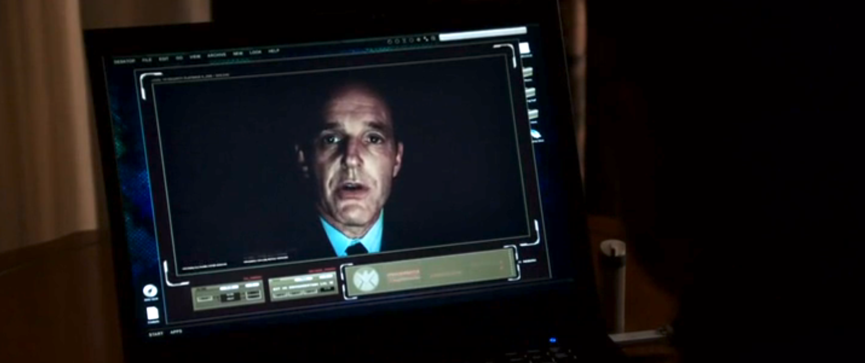 When we saw Skye at the end of last episode, we knew she had a plan – but what? Turns out while she was in the bathroom, she scrolled up one of the pictures and wrote ‘WARD IS HYDRA!’ on it. Then she reset it back to the night photo and jammed a stick in there so that it wouldn’t change photos until someone realized it was stuck.