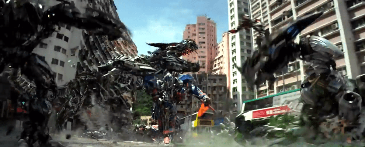 City battle Published May 15, 2014 at 2880 × 1166 in Transformers 4: Age of Extinction – Stand Together Or Face Extinction ← Previous Next → Grimlock and Optimus battle it out in ANOTHER destroyed city.