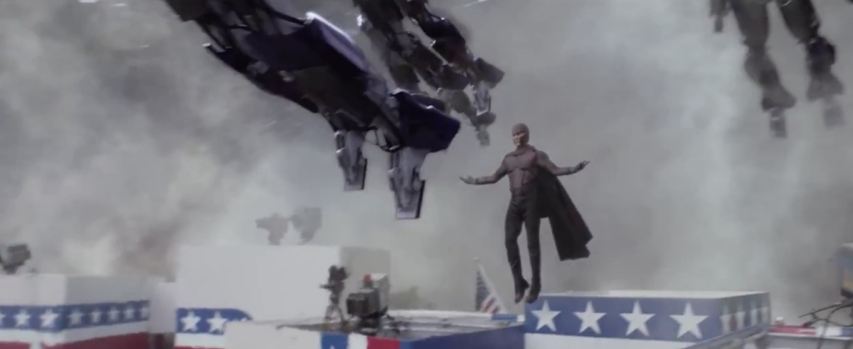 The scene(s) in question is towards the end of the film when Magneto takes control of the Sentinels – making them go rogue – and then drops an entire stadium around the White House in an attempt to kill the President and his cabinet on national television. That’s right, the man who was in jail for trying to save the president is now trying to kill the next one.