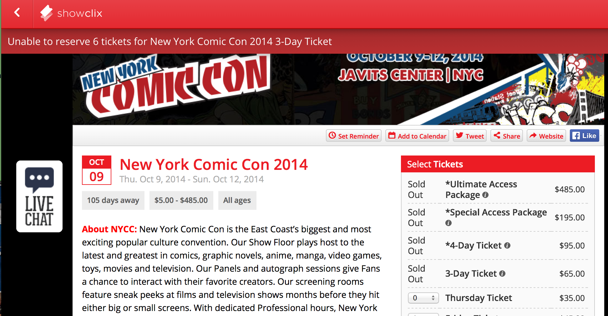 Pingback: New York Comic Con's Ticket Sales End in Epic Fail | DailyScene.comDailyScene.com