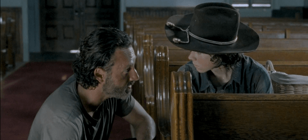 As we saw in the little mini teaser during the Summer session of Talking Dead, Carol and Tyreese are still alive and well with baby Judith. Well ,that ‘alive and well’ part might be wrong as we see them running from a horde of walkers in the teaser. Though in this full trailer we see them back with Rick and the others; and most importantly we see Rick holding baby Judith.