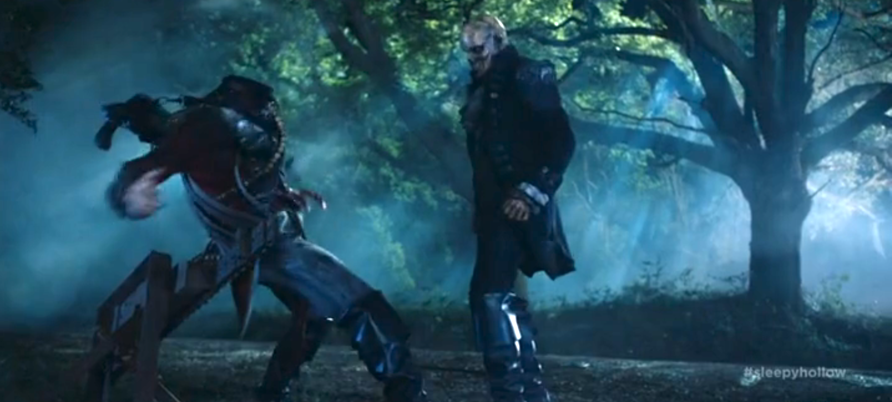 Speaking of things becoming more difficult for our heroes, Irving’s ‘release’ from the mental ward might bring new hells – courtesy of hell itself. Besides alerting Death to Ichabod and Abbie’s plan to rescue Katrina, we saw Henry/Jeremy doing something with a pen before he assumed control of his War Armor – but what? At episode’s end we discovered that this was all part of his plan for Irving. By adding a spike into the pen, he would insure that Irving would prick his finger on it; but what could this all mean?