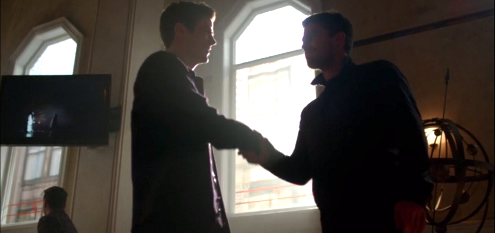 If you’ve been following The Flash, then you know that despite his super speed, Barry basically runs right into a situation without getting to know his surroundings, opponents abilities or anything. He might be fast; but he runs in blind every time instead of do some homework. This is exactly what Oliver tries to teach Barry. As for whether or not he heeds this question, you’ll have to wait for next episode to see that – Spoiler: he does – but this isn’t the only lesson Oliver tries to teach Barry.
