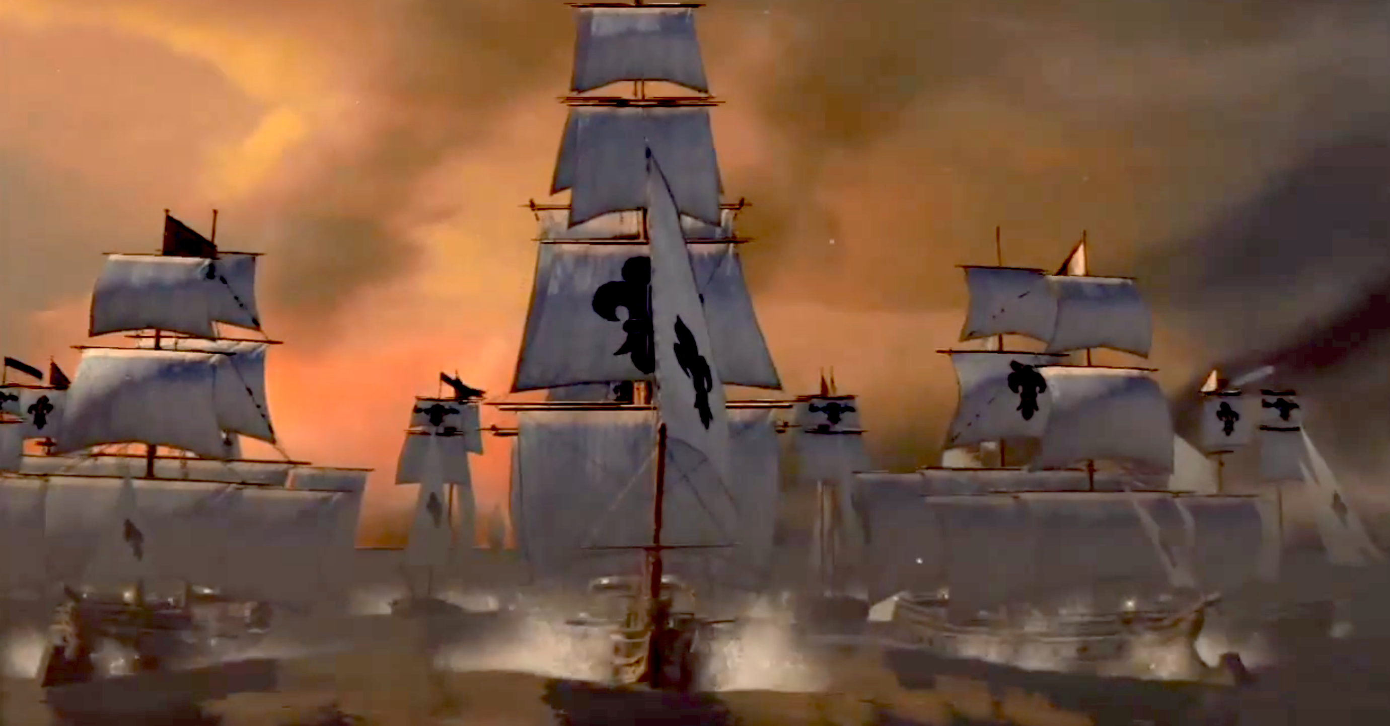 Though once this first fleet is destroyed, the real battle begins as The Couronne makes its entrance – with another, slightly stronger fleet. If you have Mortars, this is the time to use them. When The Couronne and its fleet begin the attack, they’ll be close together. Bombard them with Mortar shots so that it’s just you and The Couronne – finishing off a few stragglers with Roundshots.