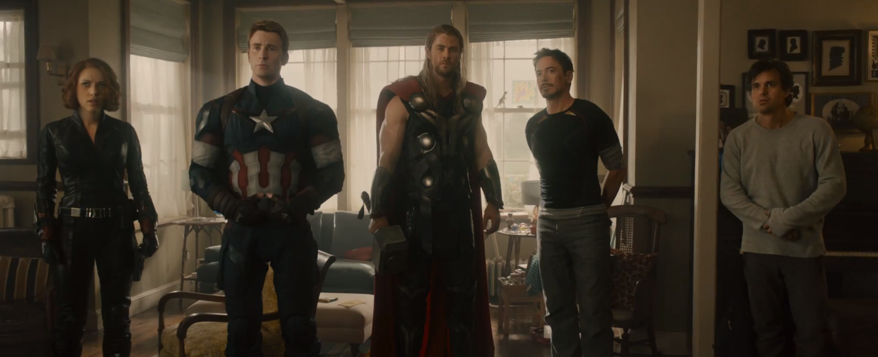 Avengers Assembled 2 Published March 4, 2015 at 2880 × 1172 in Avengers: Age of Ultron Trailer 3 – Vision, Ironman Mk 45, Mind Control & More ← Previous Next → Due to banners ripped shirt, I feel like this is post Hulkbuster fight/pre-final battle