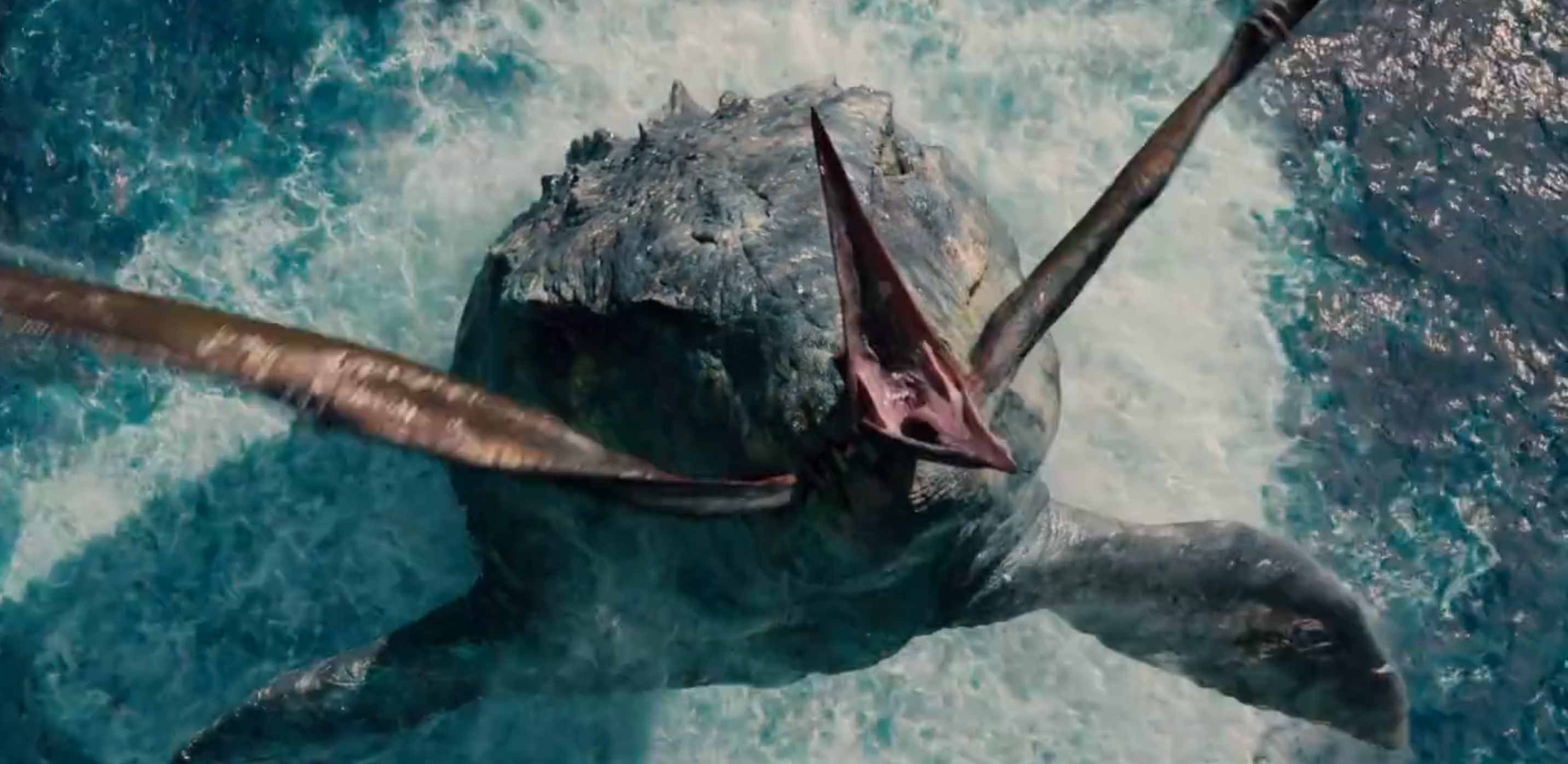 As if the idea of a massive Mosasaur in containment wasn’t bad enough as it was, seeing it swimming up against glass like in an aquarium just made things even worse. Now sure we can make a bunch of Sea World comparisons, but the main point here isn’t “Free Mosasaur”. The true WTF about this is HOW are they actively keeping a creature like that contained.