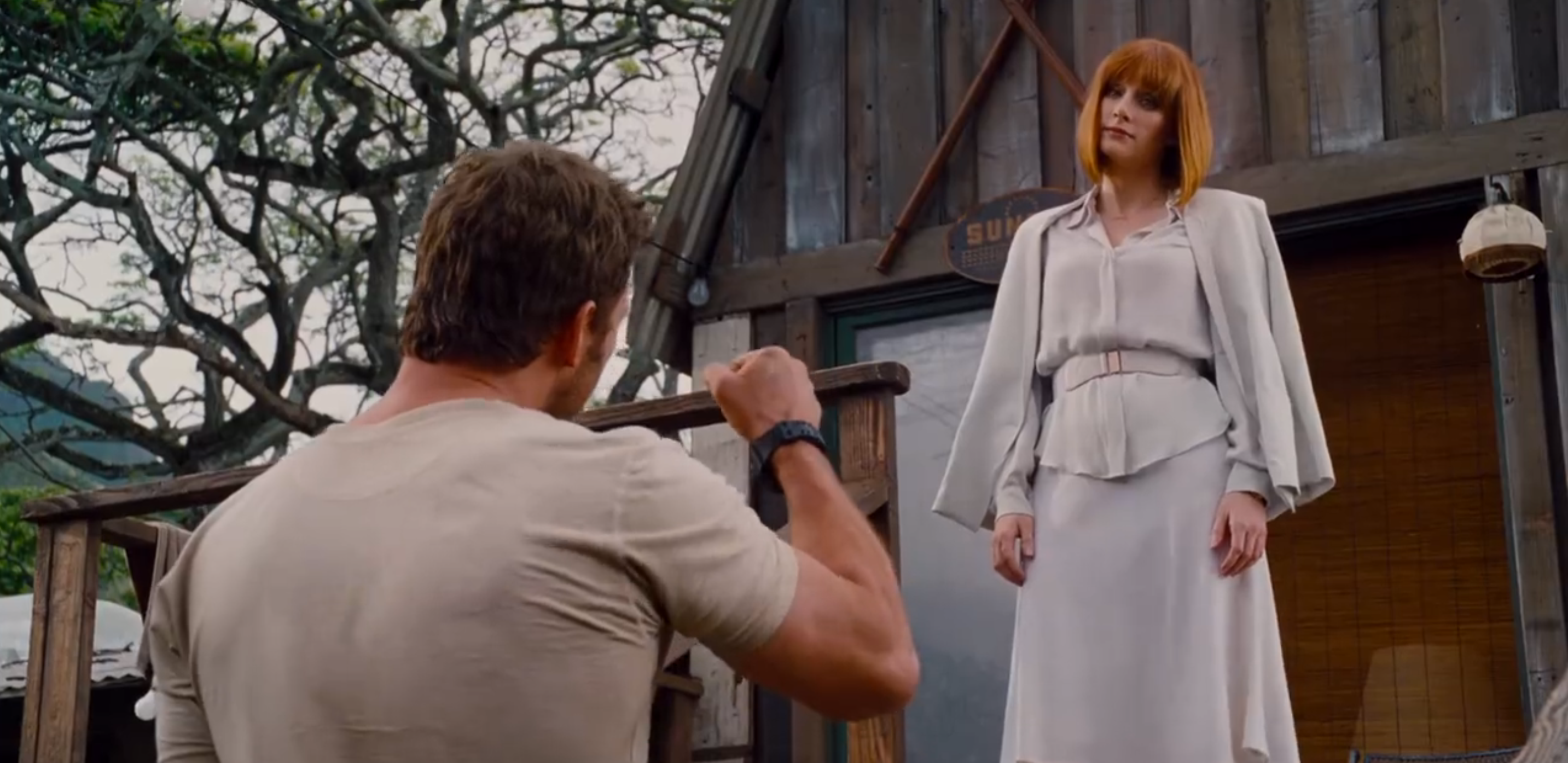 Right off the bat we have to point out how this film – and this trailer – weighs heavily upon the idea of brilliant scientists who can’t see the obvious hubris of their ideas. Dr Claire Dearing (Bryce Dallas Howard) is immediately set up as someone who ‘can’t relate’ to the simplest things in life – and serves as a hilarious foil to Owen Grady (Chris Pratt) who seems to be the only one with common sense.