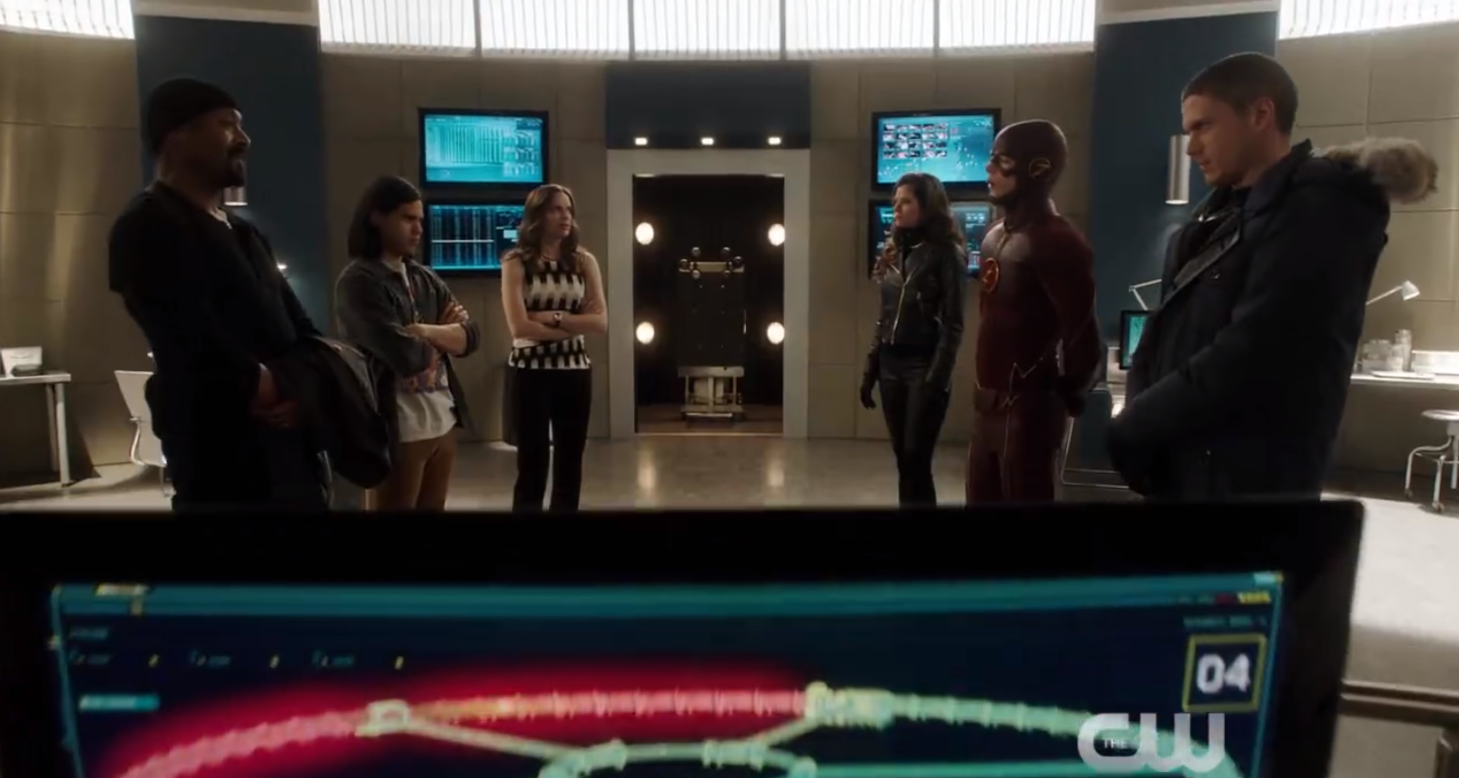 The hardest part of the Flash/Arrow-verse lately has been placing WHERE these episodes take place. Thankfully though, this crossover has a much easier to find point of access. In this episode we learn two key facts: First of which is that Lyla simply says Oliver is in Nanda Parbat (not that he’s a lying traitorous son of a B). The next fact is that Oliver is in his Al Sah Him uniform and asks Barry for an upcoming favor. Based on all this info we know that this episode takes place BEFORE Oliver kidnaps Lyla in Ep:21 “Al Sah Him” of Arrow.