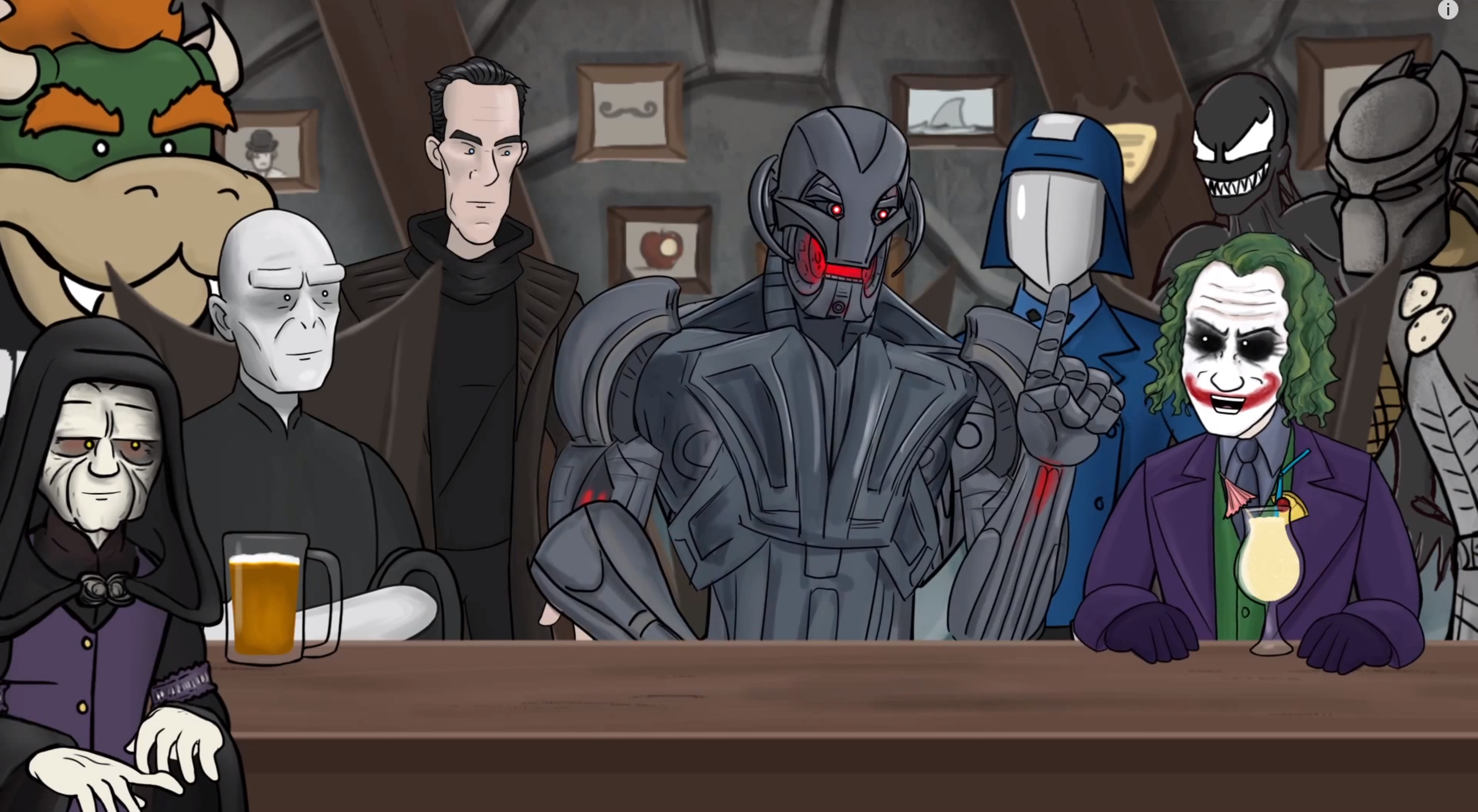 (From Left To Right) Bowser, The Emperor, Voldemort, Khan, Ultron, Cobra Commander, Joker, Venom, Predator