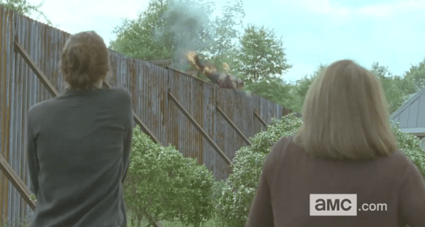 Earlier in the footage we hear Morgan tell Rick that maybe he should give people chances; and he’s not alone in this belief as later on we see a stand off between Rick and Daryl about whether or not they should help Alexandria or just leave them to their own slow demise. We must remember that Rick is still a little off-sides with these people and all those feelings of resentment and annoyance won’t go away over night; but there does seem to be some signs of hope that they’ll get their act together. And they’ll have to considering how badly Alexandria’s fall is foreshadowed … and shown.