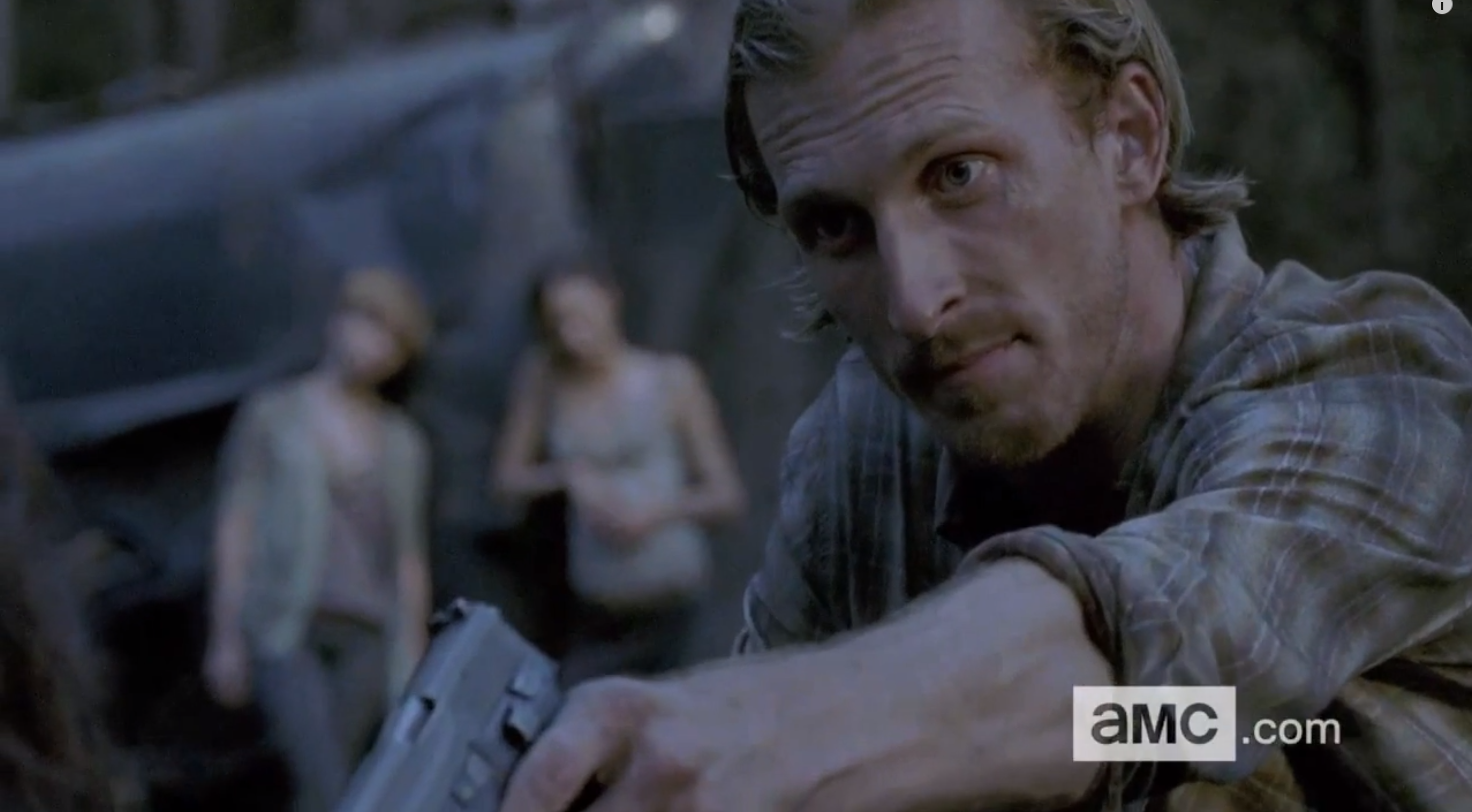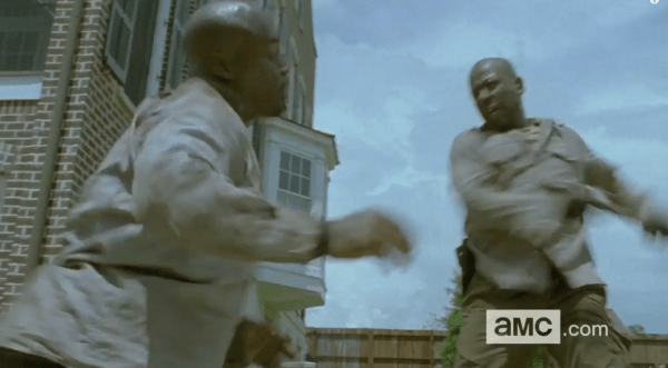 • It’s blurry so its hard to see, but is that Morgan hitting Gabriel with his walking stick? Does Gabriel loose it again … again? If so, WHY is he still around.