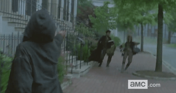 The wolves will most likely be making their move on Alexandria now that they have Aaron’s ‘welcome bag’. In fact theirs even a few scene of people opening fire on people –not walkers – inside Alexandria. Are these Wolves or is the town looting itself in a panic? Probably option 1; but we’ll still have to wait for now; but one thing is for sure: with so many shot of a sea of walkers outside the gates, the streets of Alexandria overrun and Jessie hiding from walkers, Alexandria is about to be hit hard! Will it be rebuilt though? Most likely, but let’s save that for a later part of the season. This could explain why we see so many key members outside the walls at one point as well as those scenes shot near a cliff-face. Moving Alexandria to higher ground would be an advisable option.