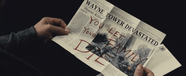 In case you missed it, we find Bruce Wayne in his Batcave with classic Joker spray paint over one of the suits mocking how Batman failed. This most likely isn’t in regards to the Wayne Financial destruction – since Joker doesn’t know Bruce is Batman – so there must be some other failure in Bruce’s past that he was being guilted over in this spray paint. Well upon closer inspection you can see that this suit is actually a Robin suit, specifically the suit of Jason Todd – the Robin famously killed by the Joker. This is most likely the incident that made Batman ‘retire’ in the first place. Either way, seeing a history between Batman and Joker already starting to form is incredible.