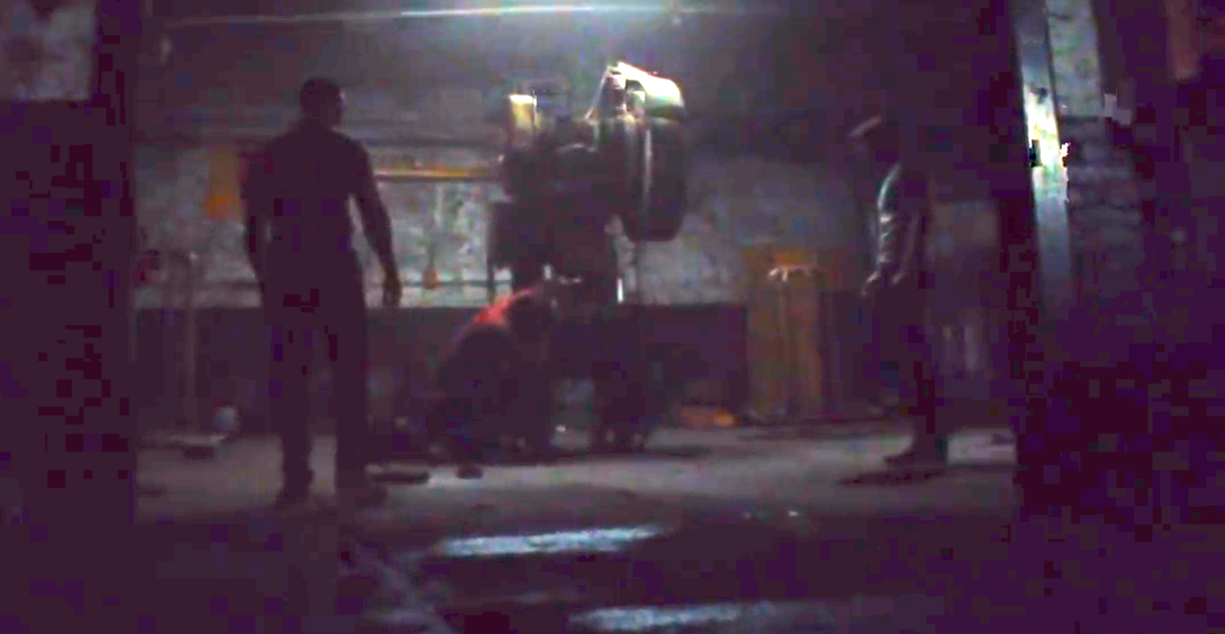 *Winter Soldier shown with his robotic arm mangled in some machinery*